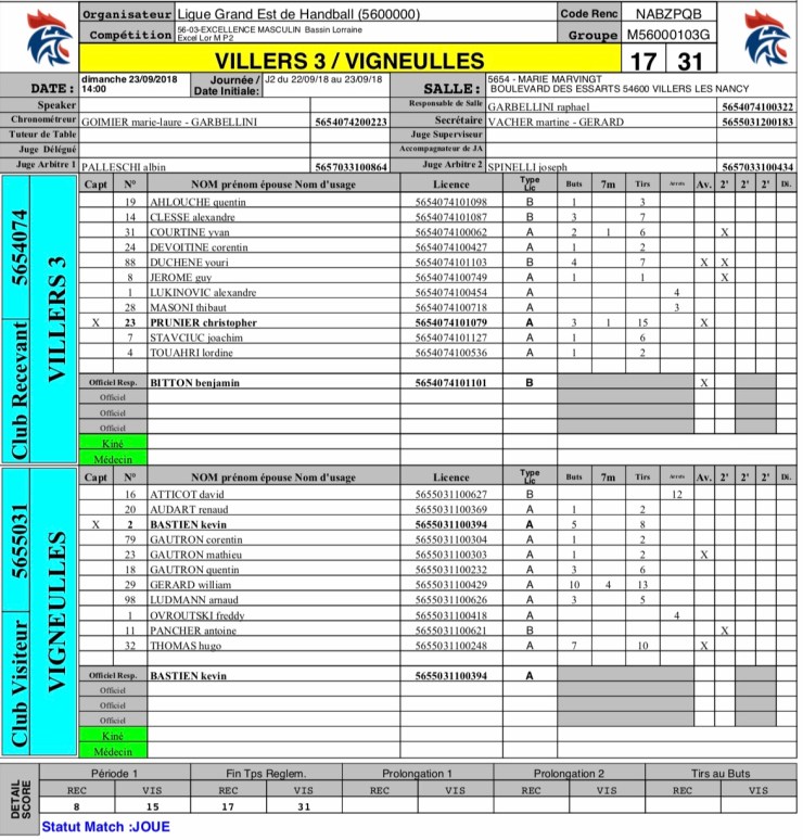 2018-09-23 Region J02 SG3 Villers Hb Club VS AS Vigneulles Handball 17-31